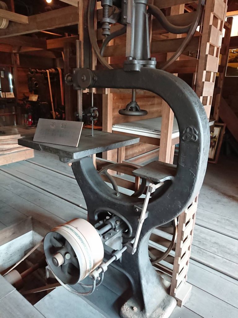 大正1 1年に大川で最初に機械が導入された、その時代の松本由太郎の機械が大川木工産業資料館に保存されています。