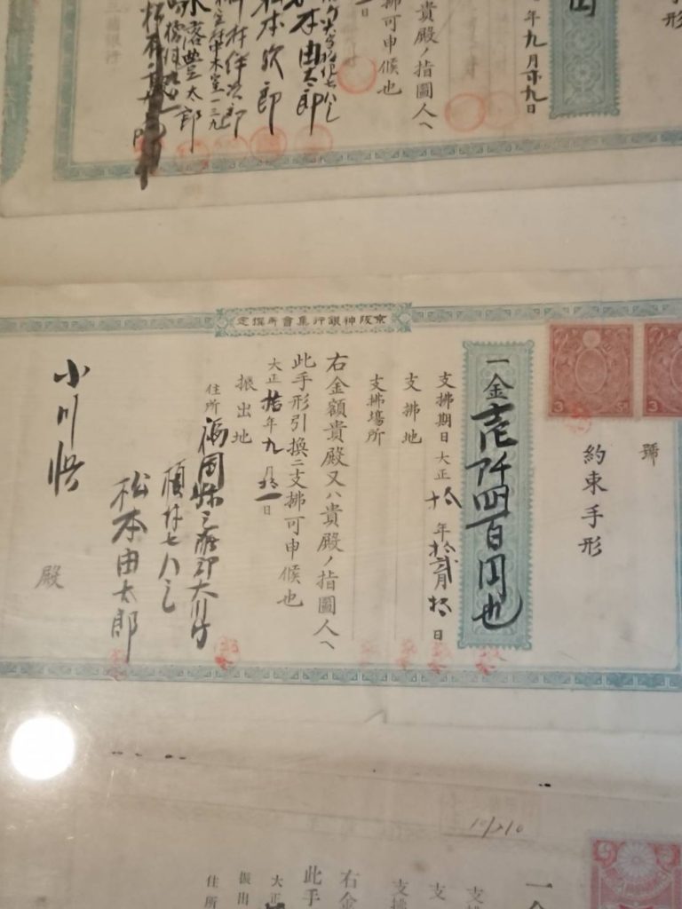 これらは、大正11年に実際の取引上の実際に使われた書類です。