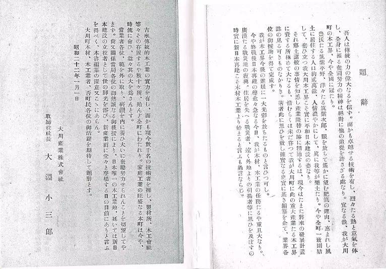 戦争での敗戦は、日本の住宅や設備、文化や人間の心までも、全てを破壊して終結したが、全国の戦災復興や炭鉱住宅等の需要が一斉に始まり、大川には異常な木工ブームが訪れる事になりました。